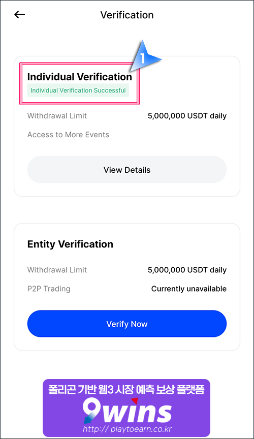 14. Individual Verification이 Successful로 뜨면 성공적으로 신분인증이 완료된 것으로 이제 입출금 및 거래가 가능합니다.