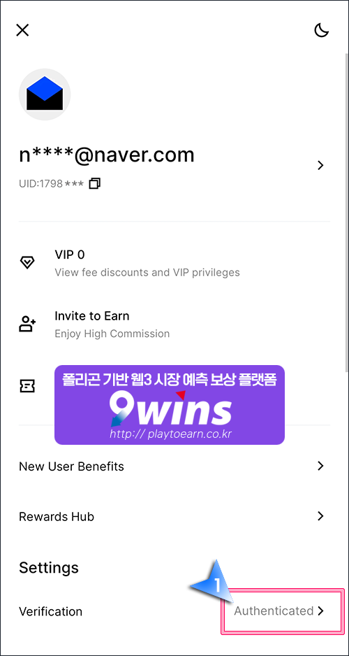 12. KYC 신분 인증이 완료되었는지 확인하시려면 좌측 상단의 아이콘을 클릭합니다.
