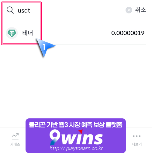 2. 돋보기 검색창을 클릭해서 USDT를 검색합니다.