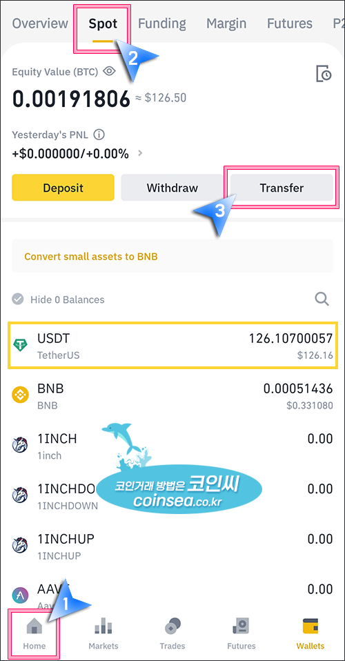 4. 바이낸스(Binance) 앱 - USDT로 전환 따라하기
