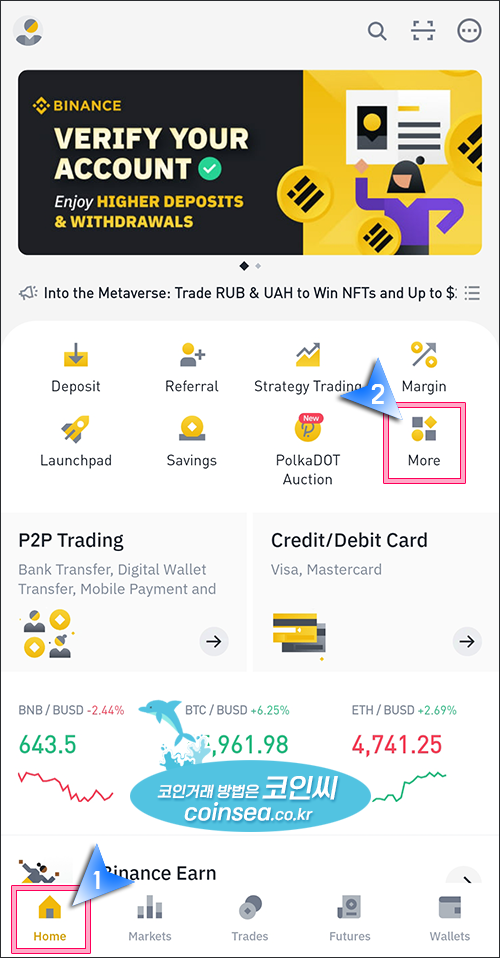5. 바이낸스(Binance) 앱 - 각종 메뉴 알아보기