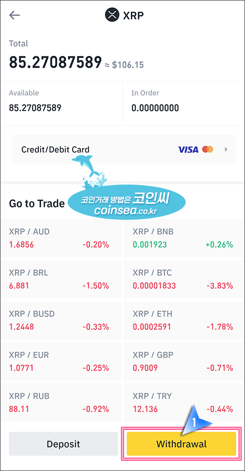 10. 리플 상세 내역 하단의 Withdrawl(출금)을 클릭합니다.