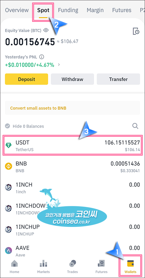 4. 바이낸스(Binance) 앱 - USDT로 전환 따라하기