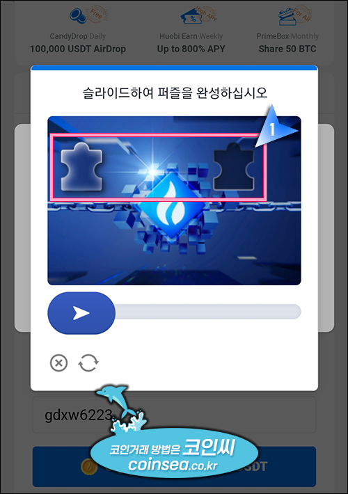 3. 퍼즐 조각을 우측으로 드래그하여 퍼즐 조각을 완성해주세요.