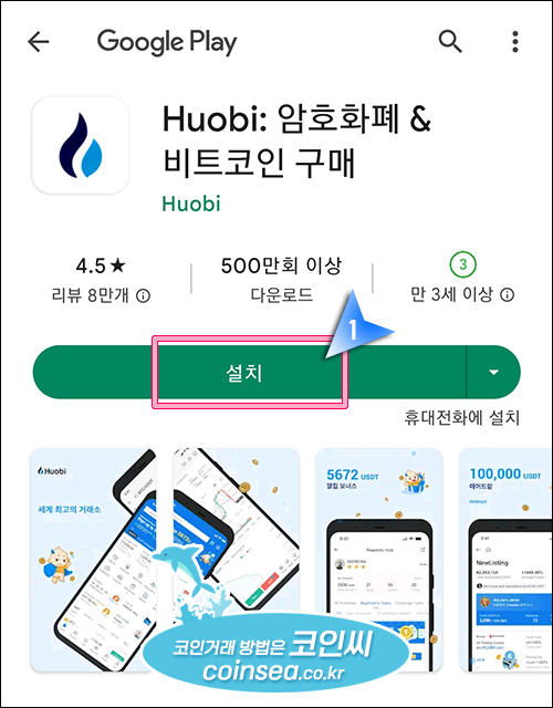 6. 후오비 글로벌 앱 "설치"를 클릭해주세요.
