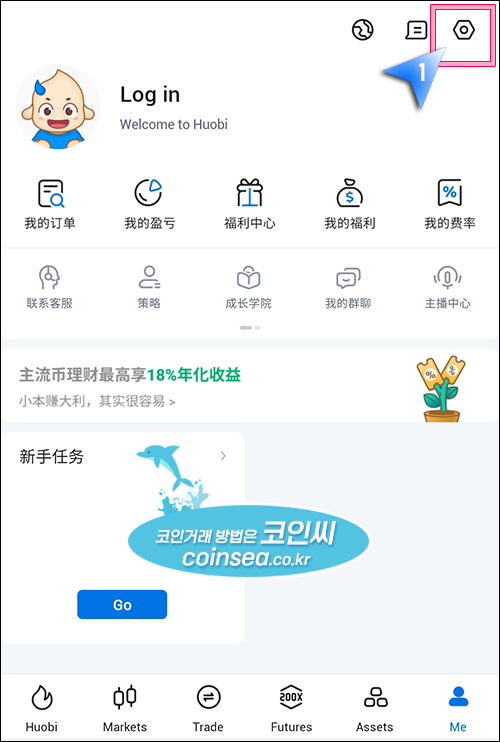 21. 이렇게 후오비에 정상적으로 가입이 완료되어 메인화면에 접속되었습니다.