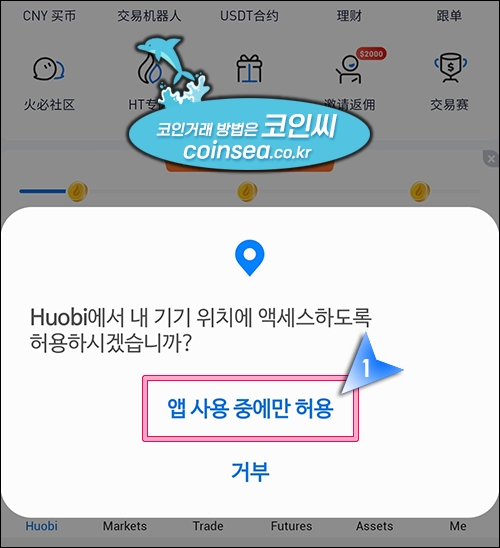 10. 앱 언어 설정이나 KYC 주소지 인증시 필요하므로 "앱 사용중에만 허용"을 클릭합니다.