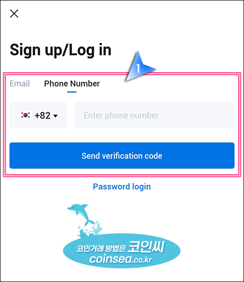 1. 가입은 이메일이나 휴대폰으로 진행할 수 있습니다. 이메일로 가입하시는 분들은 Email를 클릭한 후 이메일 주소, 비번을 입력하시고, 휴대폰으로 가입하시는 분들은 Phone를 클릭한 후 휴대폰 번호와 비번을 입력합니다.