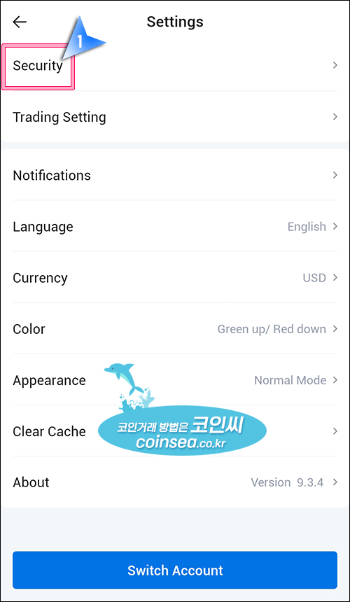 15. Settings(설정)에서 Security(보안)를 클릭합니다.