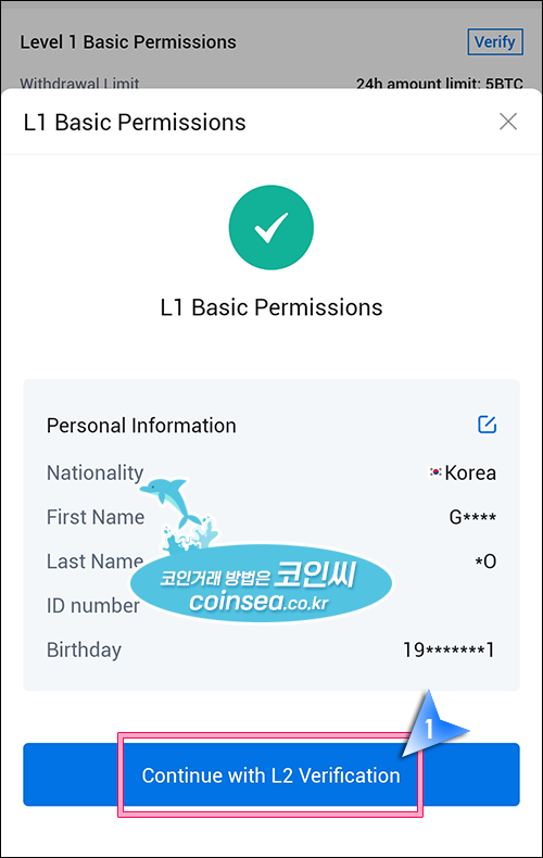 5. 입력한 내용을 확인 후, "Continue with L2 Verification"을 클릭합니다.