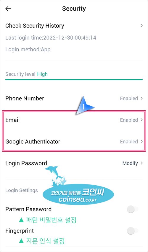 17. 이렇게 휴대폰과 이메일, 구글 OTP 인증까지 완료되었습니다.