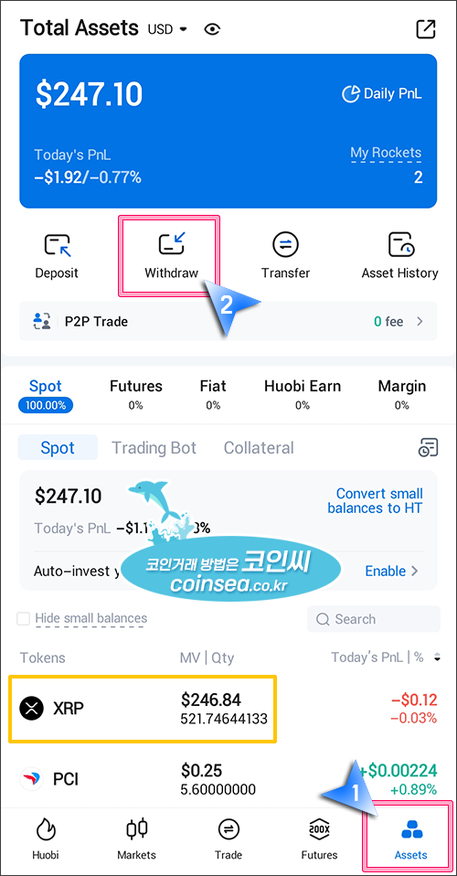 HTX(구 후오비) 앱 - 왕초보를 위한 코인 출금 따라하기