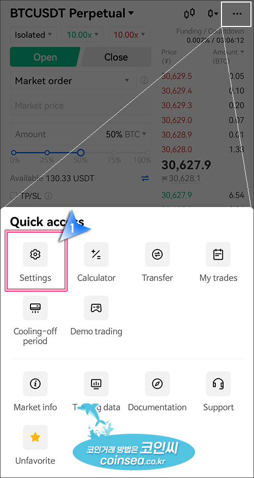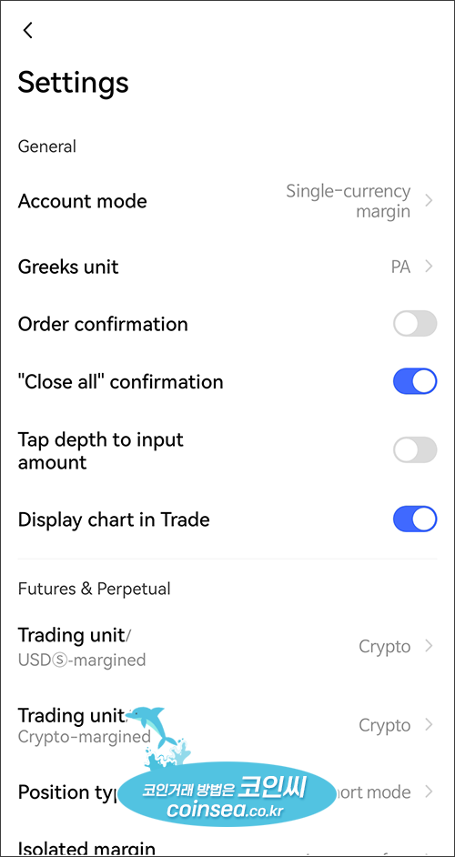 특히 Settings를 클릭하면 헷지 모드와 같은 거래 관련된 각종 설정들이 가능합니다.