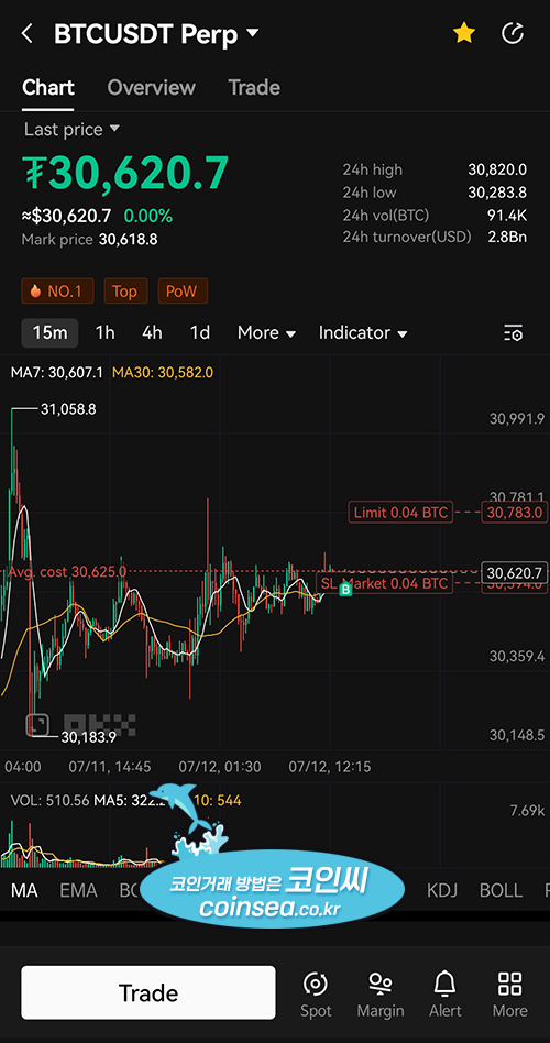 참고로 Convert는 코인간 교환 버튼, Spot는 현물거래, Margin은 마진거래, Futures는 기간이 정해져있는 선물거래를 말합니다.