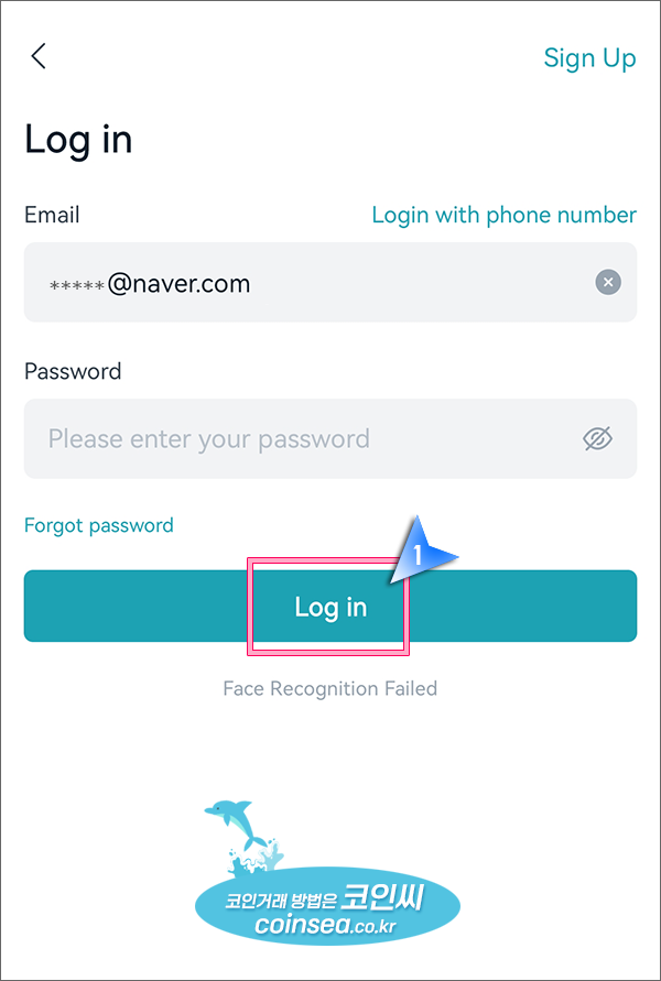 13. 이메일주소와 비번을 넣고 "Log in"을 눌러주세요. 휴대폰번호로 가입하신 분들은 우측 상단의 "Login with phone number"을 눌러서 휴대폰 번호를 입력후 로그인하시면 됩니다.