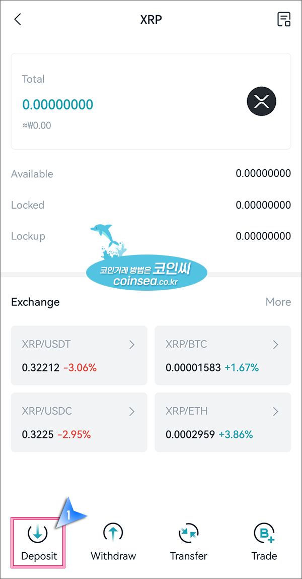 4. 리플 화면 하단의 Deposit(입금)을 클릭합니다.