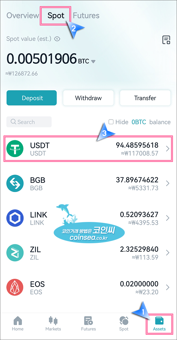 비트겟(Bitget) 앱 - 왕초보를 위한 USDT로 전환 따라하기