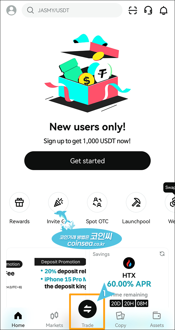1. 앱 하단의 Trade 버튼을 한번 누르면 선물거래 화면으로 이동됩니다.