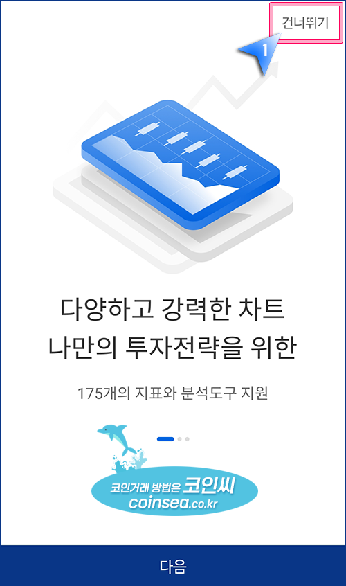 2. 앱이 실행되고 소개 화면이 나오면 "다음"을 클릭해서 읽어보시거나 바쁘신 분들은 "건너뛰기"를 클릭합니다.