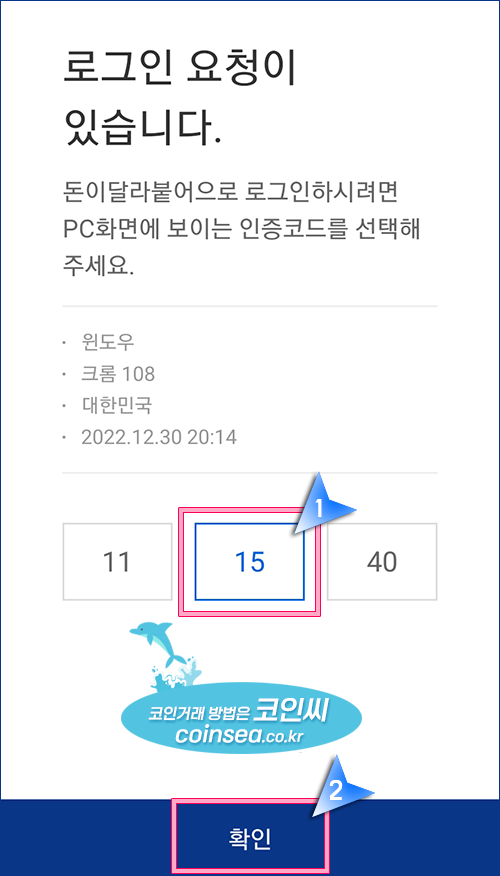 6. 업비트 PC화면에 나와 있는 숫자를 선택합니다.