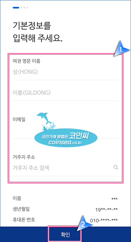 이메일, 주소 등을 입력하고 하단의 "확인" 버튼을 클릭합니다.