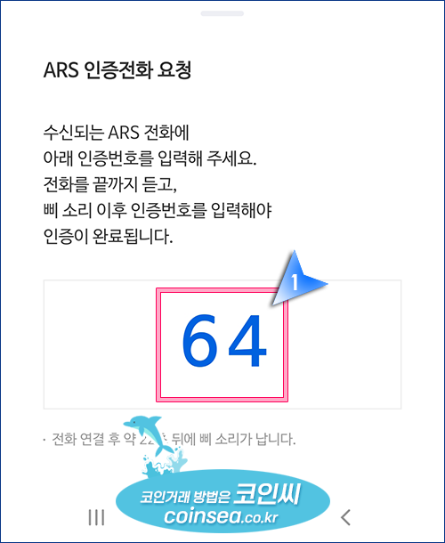 9. ARS전화가 수신되면 인증번호를 입력해줍니다.