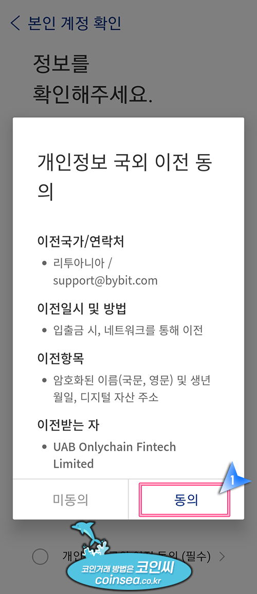 23. 개인정보 국외 이전 동의에서 '동의'를 클릭합니다.