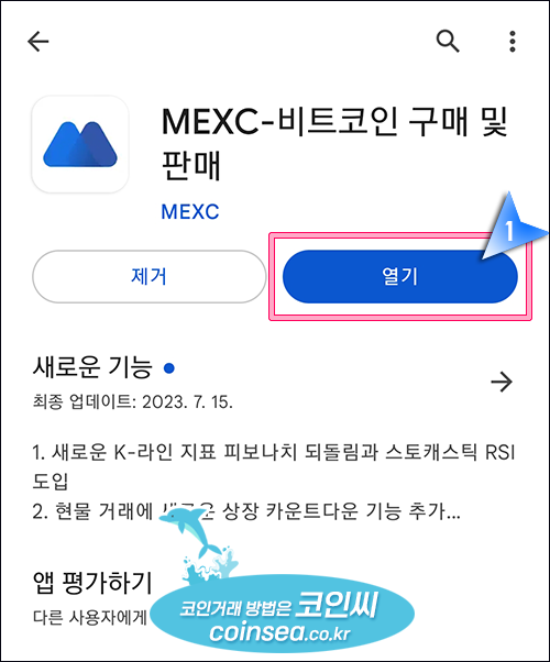 8. MEXC 앱 설치후 "열기" 버튼을 클릭해서 앱을 실행합니다.