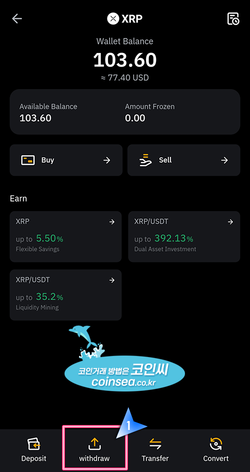10. 앱 하단의 Withdraw를 클릭합니다.