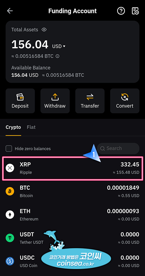 9. 바이비트 Funding 지갑에 있는 리플을 클릭합니다.