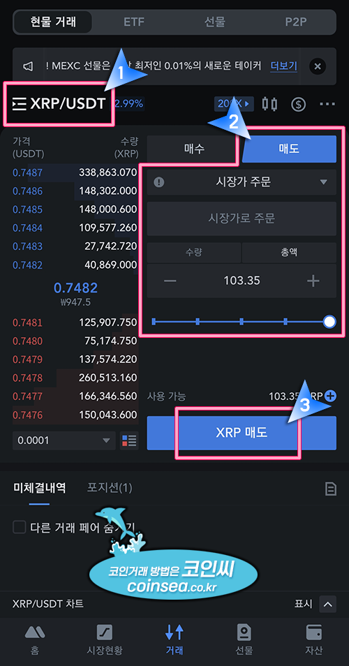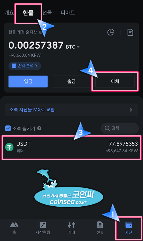 멕씨(MEXC) 앱 - 왕초보를 위한 USDT로 전환 따라하기
