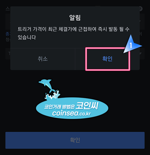 7. 손절가가 현재가에 가까우면 아래와 같은 메시지가 나오는데 확인을 눌러주시면 됩니다.