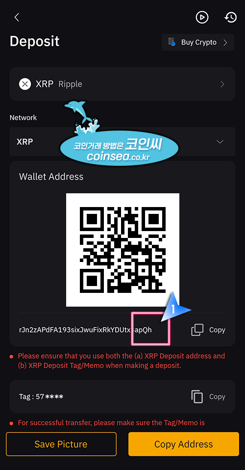 16. 이렇게 바이비트의 리플 입금 주소 마지막 4자리를 복사해서 입력해주시면 되겠습니다.