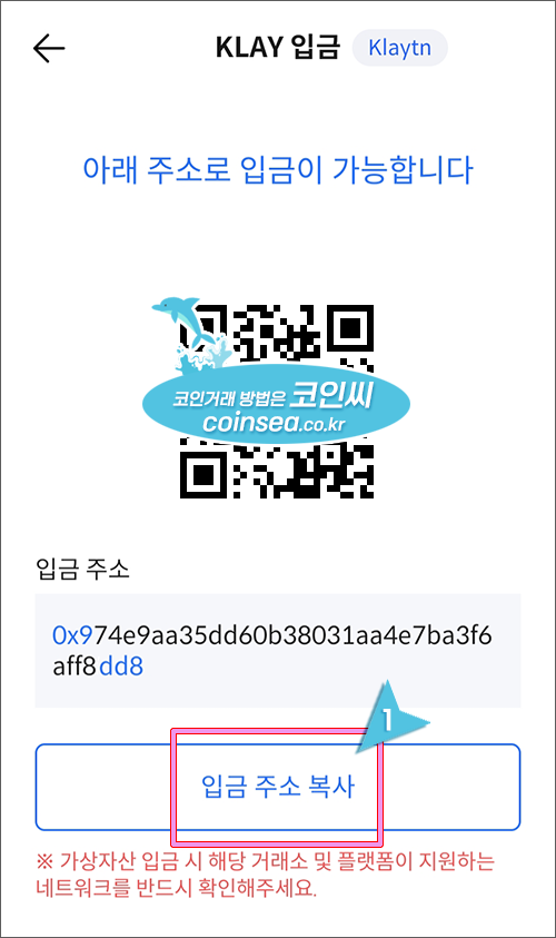 5. "입금주소 복사" 버튼을 클릭합니다.