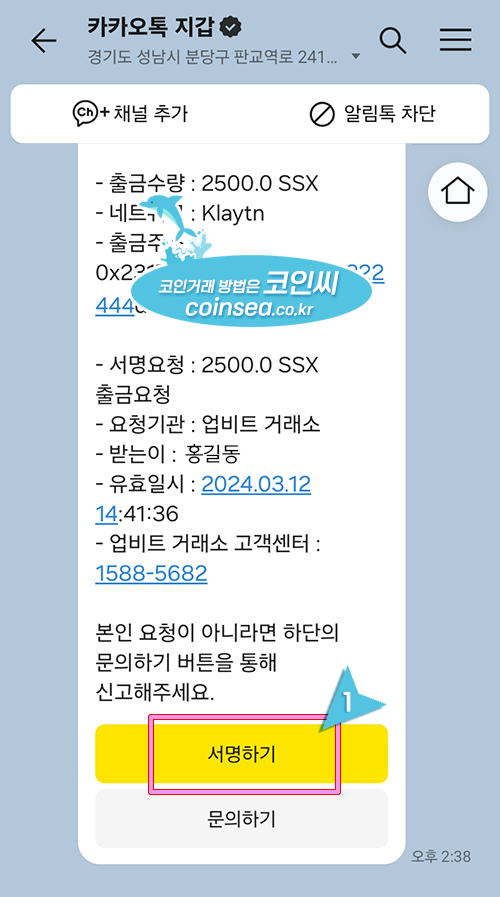 코빗 - 입출금 - 클레이튼 - 입금 - 입금 주소 발급 - 입금주소 복사
