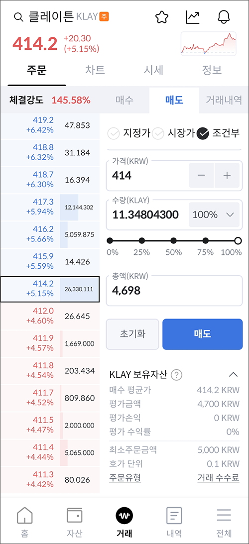 12. 클레이 거래화면으로 이동해서 가지고 있는 클레이를 매도하시면 원화가 됩니다.