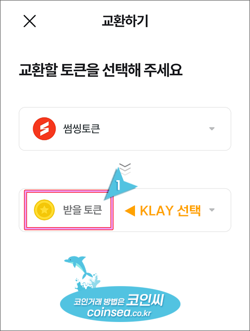 8. 받을 토큰에서 "KLAY"를 선택합니다.