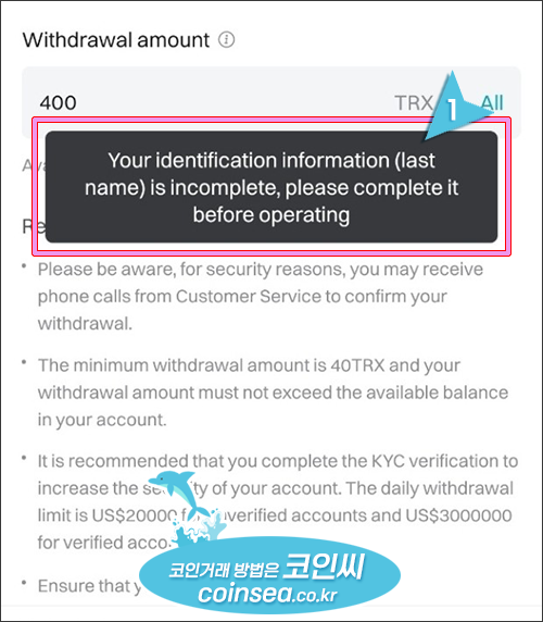 특히 예전에 비트겟이 한글을 지원할 때 비트겟에 가입하신 분들은 고객센터에서 수동으로 이름을 영문으로 변환을 하면서 국내거래소와 다르게 입력하다 보니 이런 메시지를 받게 됩니다. 이럴 경우 비트겟 고객센터에 연락해서 이름을 변경 신청을 해주셔야 합니다.