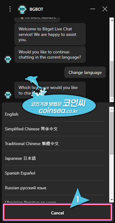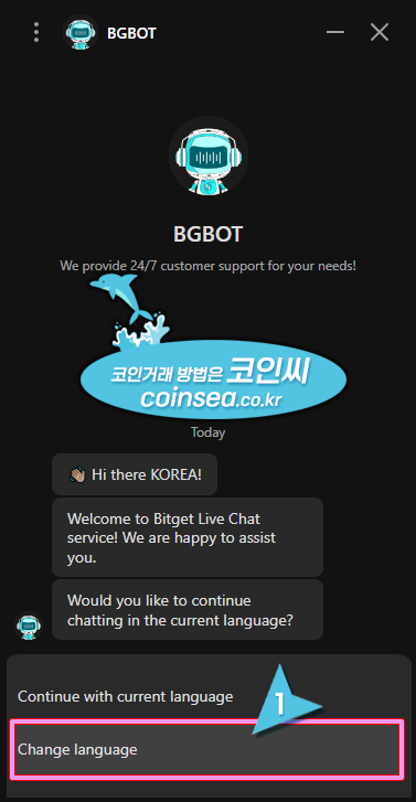 2. 상담봇이 언어 선택을 물어보면 "Change Language"를 클릭합니다.