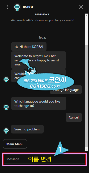 비트겟(Bitget) - 고객센터에 이름 변경 요청하기