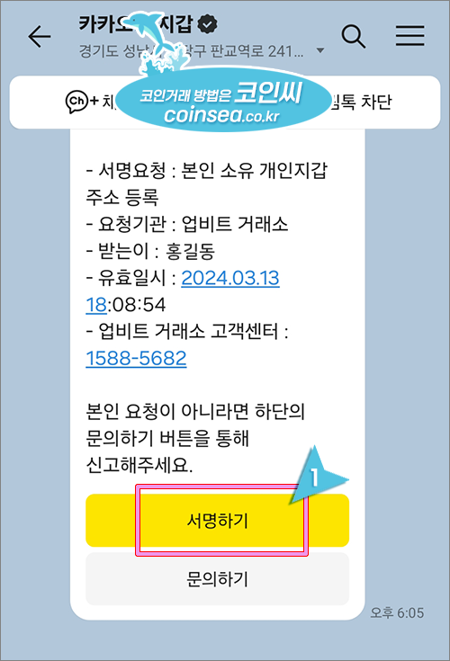 14. 서명 메시지가 뜨면 "서명" 버튼을 클릭합니다.