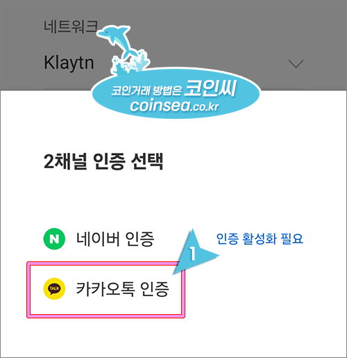 7. 2채널 인증선택에서 "카카오톡 인증"을 클릭합니다.