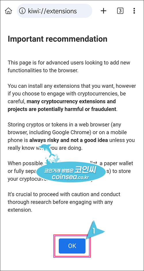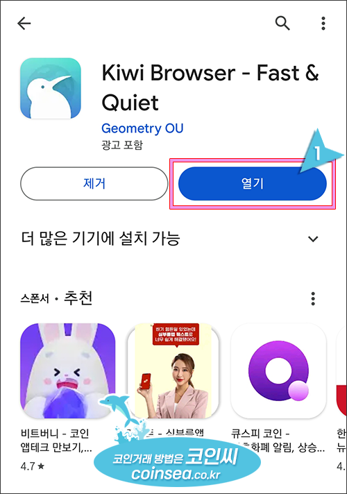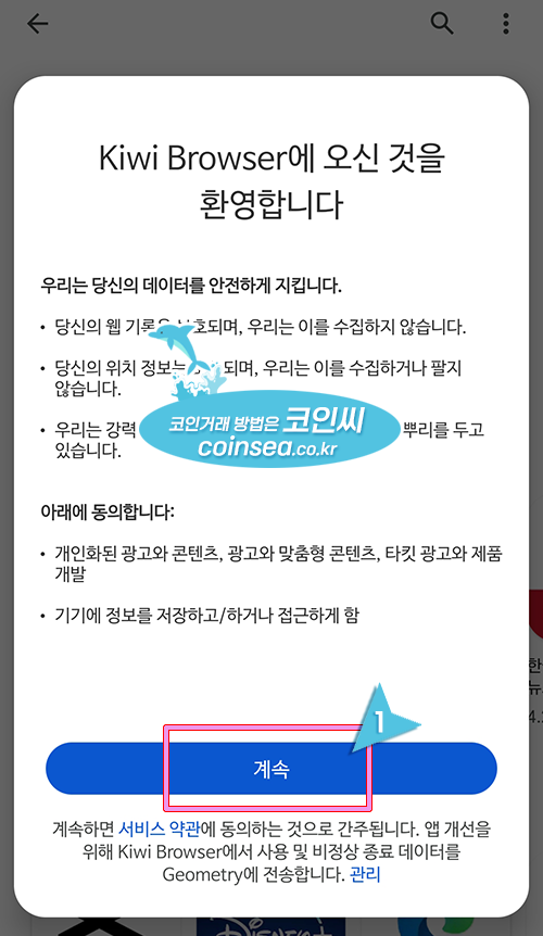 1. 플레이 스토어에서 Kiwi Browser을 검색하여 설치합니다.
