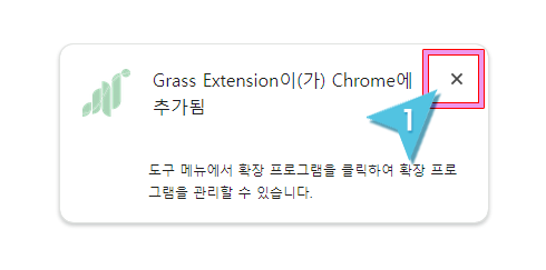 6. 크롬 브라우저에 Grass Extension이 추가되었습니다. 닫기 버튼을 누르고 Grass 메인화면으로 이동합니다.