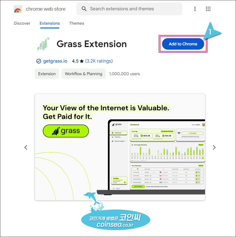 Grass는 아직 베타서비스 중이라 별도의 토큰이 존재하지 않지만 크롬 확장 프로그램을 이용한 네트워크 기여자에게 점수를 부여하고, 해당 점수를 기준으로 나중에 토큰을 에어드랍받을 수 있습니다.