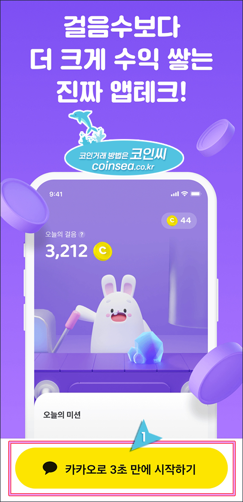 걸음마다 생겨나는 코인을 적립하기 위해 눌러야 하는 것은? 노란색 동전
