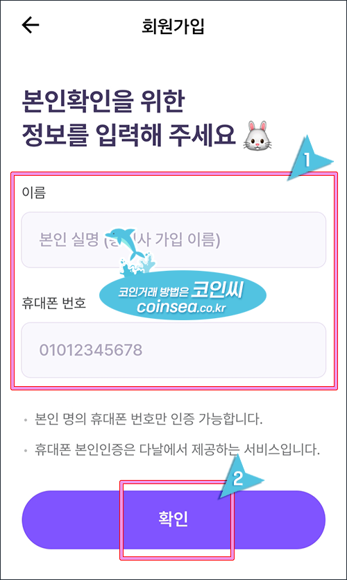 5. 이름과 휴대폰 번호를 입력후 "확인"을 클릭합니다.