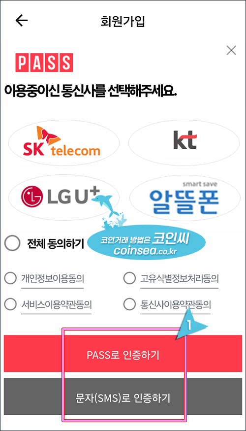 6. 통신사를 선택후 휴대폰 인증을 완료합니다.