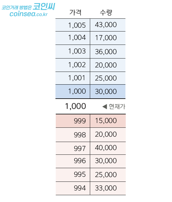 매도시 1,004원에 매도 주문되고, 매수시 995원 매수 주문됩니다.