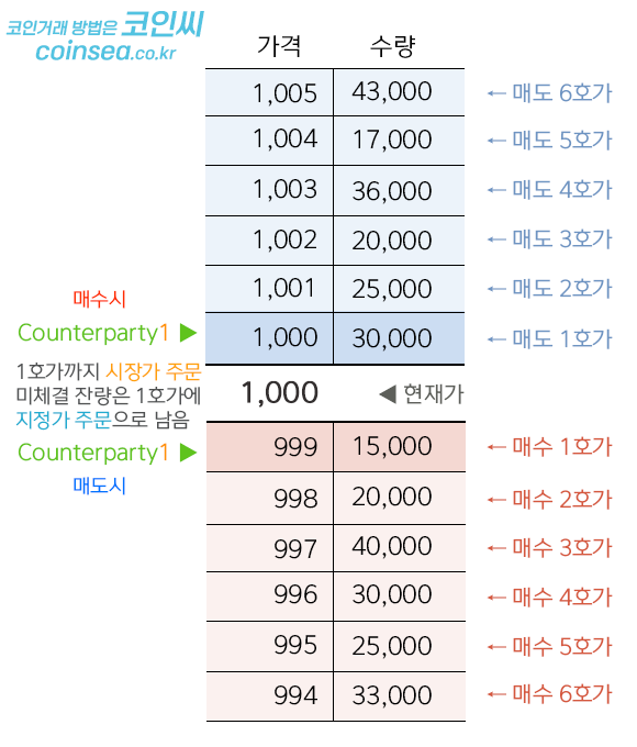 Market(시장가 주문)과 Counterparty 주문의 차이점